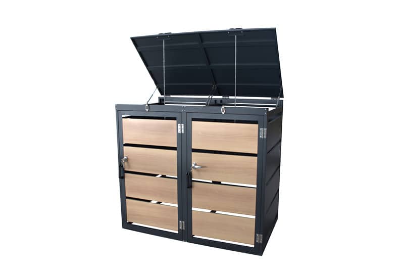 Ta smetarnik, za 2 x 120L zabojnika, je idealen za skrivanje vaših zabojnikov za smeti pred pogledi obiskovalcev in predvsem vas, ki jih vidite vsak dan.
